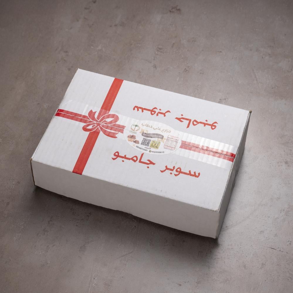 يأتي التمر في عبوة تحتوي على 4 حبات في الكرتون بإجمالي وزن 4كيلوغرامات. ، تتميز علي حطاب للتمور باعلى دقة والجودة في إنتاج أفضل أصناف التمور. اضمد اليدوي